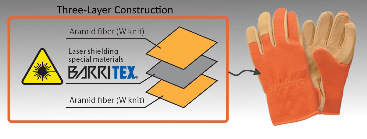YLBG-11 Laser Safety Gloves are made of thin and highly flexible laser-resistant material. Laser shielding is enabled with a newly developed laser shielding material "Barritex". They are designed and tested to protect worker's fingertips and hands from reflected and scattered laser light during work.