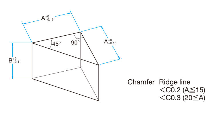 ◦RPB1 to 3 are used as a substitute for the mirror reflection of the slope. RPB1 is coated with anti-reflection coating with two surfaces which the light is incident and emitted by using the critical angle prism reflection of the slope and the surface. RPB2 are coated with reflective coating (Al+MgF2) on the surface of slope. RPB3 is the product which does not pass through the light reflected by the inclined surface of the interior of the prism, and there are three types.