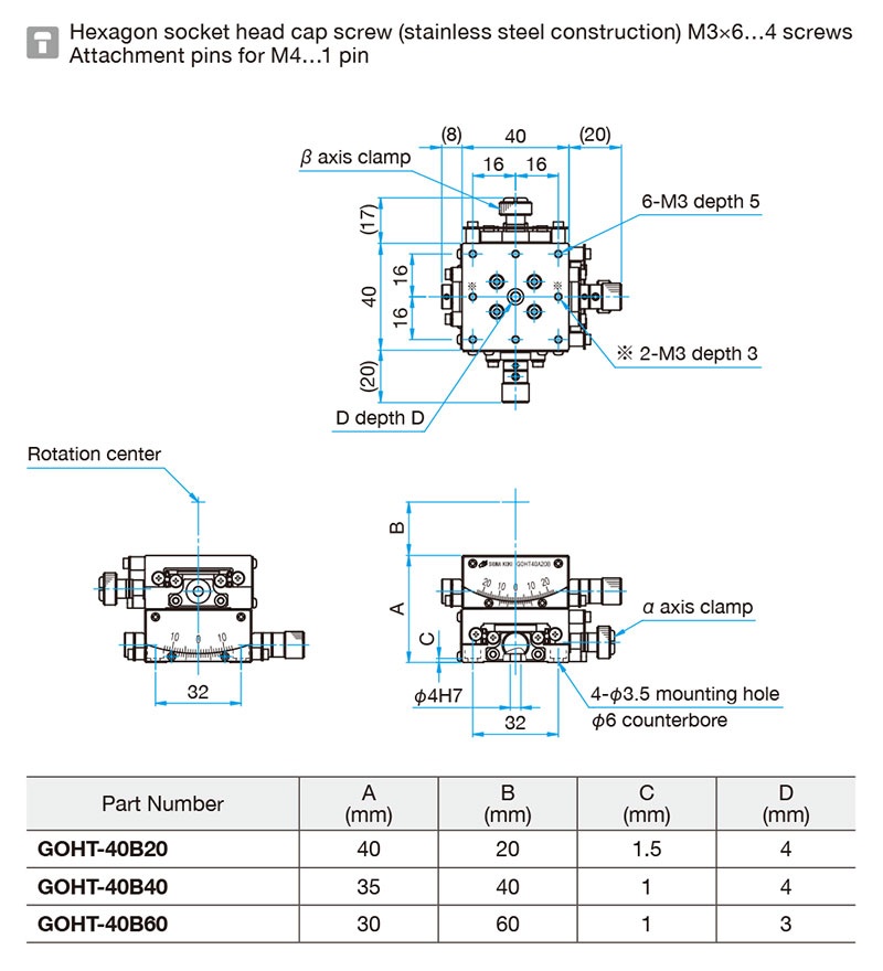 40×40mm | ±10° | 58.8N (6.0kg) |