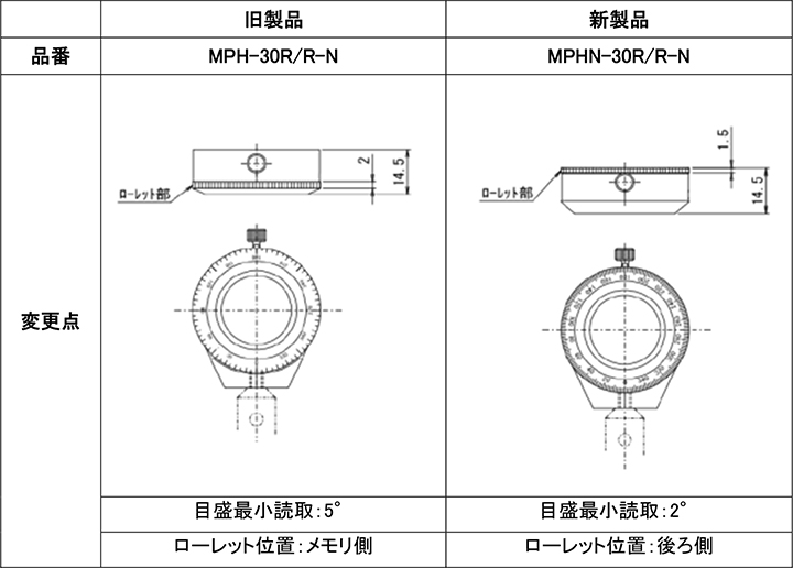 1.品番の変更 現行製品:MPH-30R ⇒ 新製品:MPHN-30R